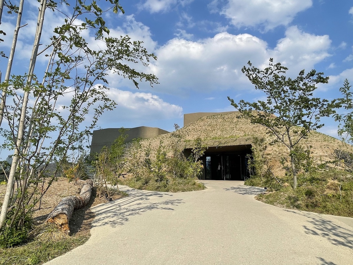 「LAGO 大津」があるのは、JR大津駅から近江鉄道バスで約20分、バス停から約8分の場所。土・日曜と祝日には、大津港と「LAGO 大津」近くのにおの浜観光桟橋を結ぶクルーズ船も運航しているので、片道約15分のプチ船旅気分を味わいながら訪れることもできます。大津湖岸なぎさ公園の中にある約1万5000㎡の開放的なエリアで、すぐ近くには高層のびわ湖大津プリンスホテルも。メインエントランスに立つと、小高い砂のお城のようなイメージの建物が出迎えてくれます。