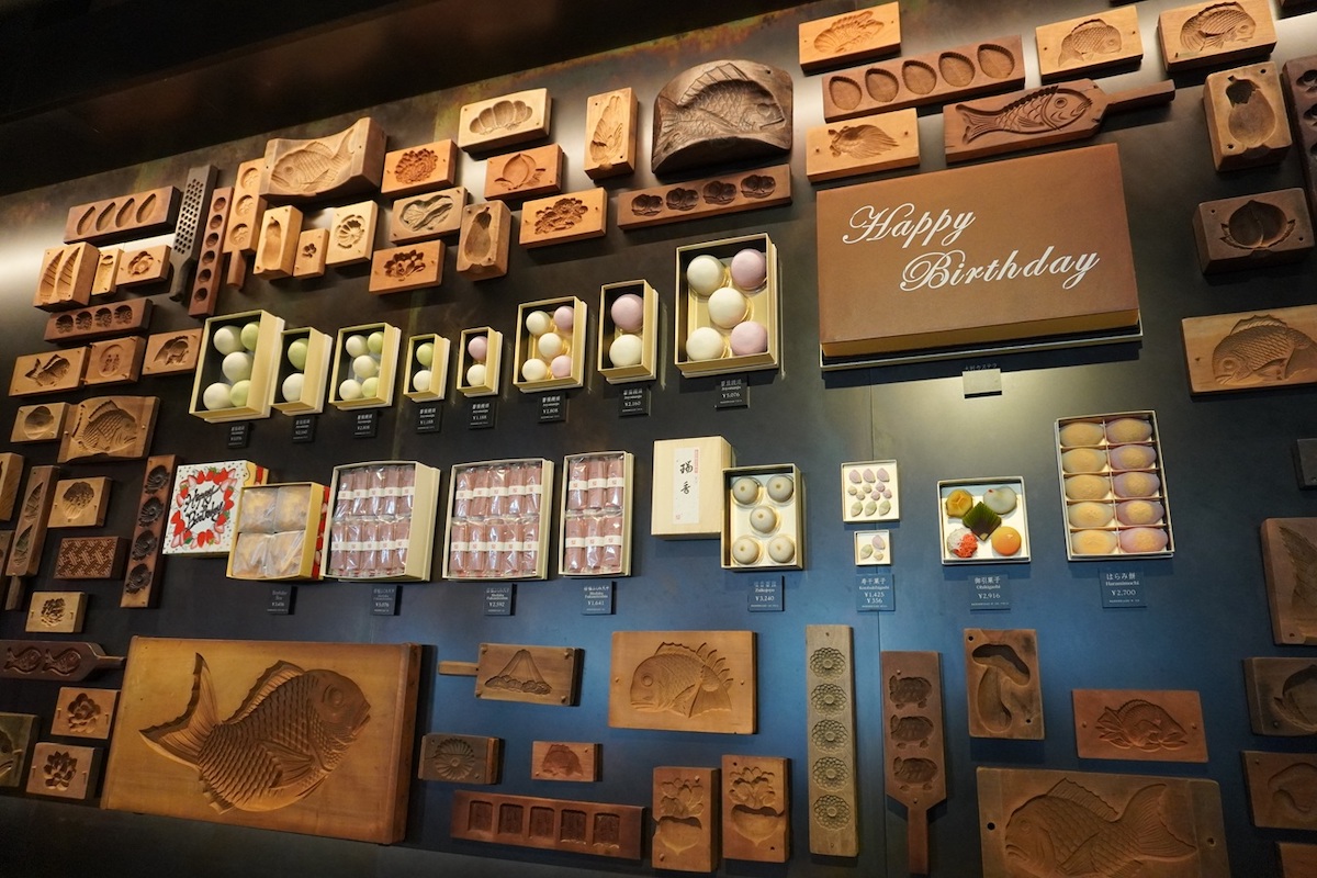 壁一面には、お菓子づくりに使われる木型をディスプレイ。思わず見入ってしまいます。