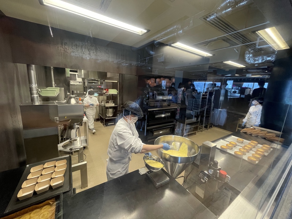 カフェの奥では、看板商品の「たねやカステラ」を焼き上げる工房もガラス越しに見ることができます。ふわふわでおいしそう!