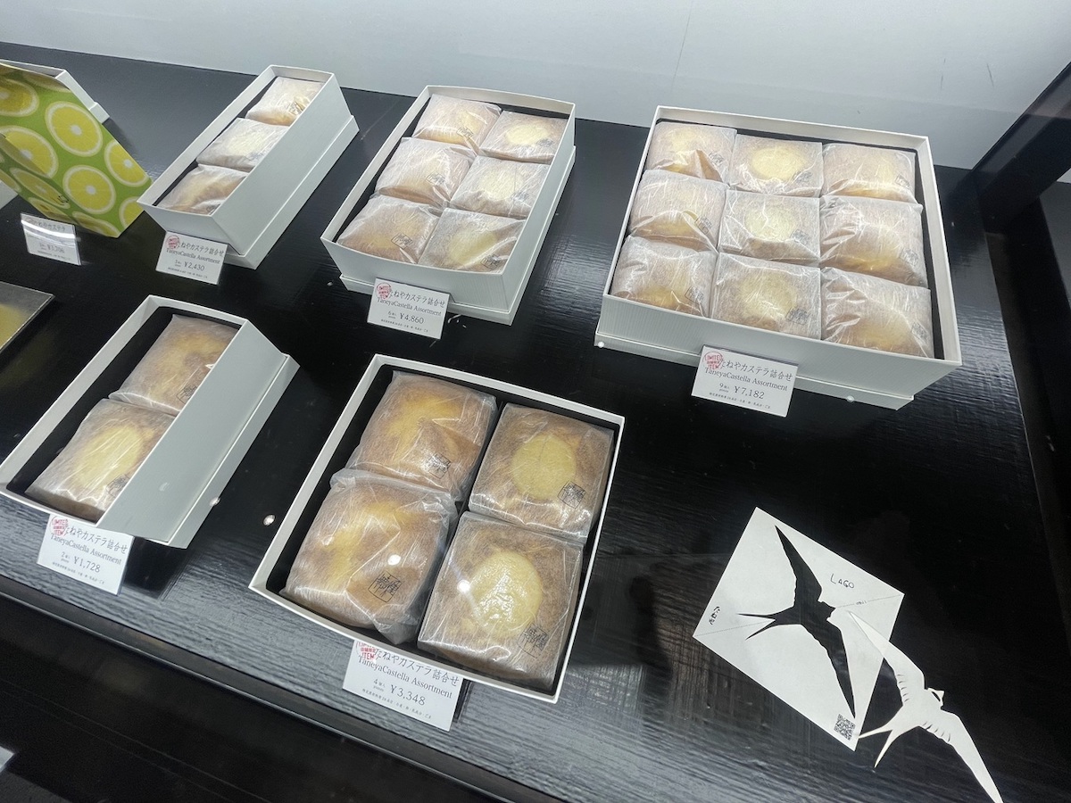 テイクアウトの「たねやカステラ瀬戸内レモン」810円には、個包装された日保ちがするものと、焼きたて(賞味期限は当日中)の販売もあります。餡と一緒に味わう「たねやカステラ」など、ほかにもおみやげにしたいお菓子がたくさん。テイクアウト商品は、公式サイトから事前に予約・購入、待ち時間なしで受け取れるサービスもあるので要チェックです。