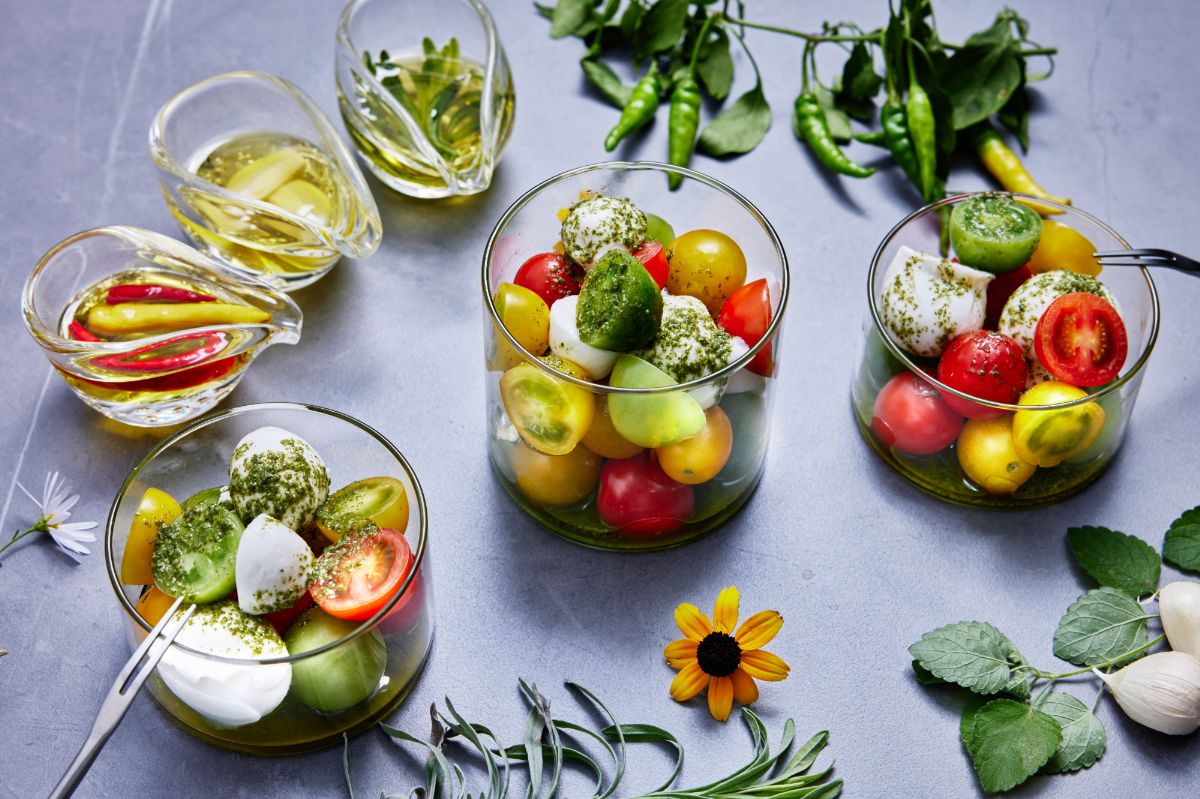 自家製オイルで味わうカプレーゼをおつまみに