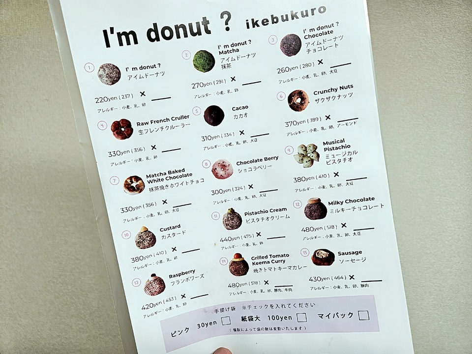 注文の仕方は、中目黒店などでも採用されているオーダーシート方式。購入したいドーナツの個数を記入して渡すと、スタッフの人が用意してくれます。