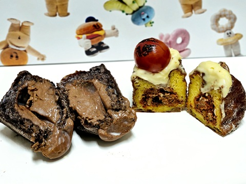まずは、チョコ生ドーナツの「ミルキーチョコクリーム」と、惣菜系の「焼きトマトキーマカレー」。