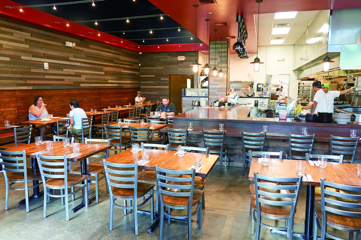 料理の香りや音も目の前で楽しむことができるオープンキッチンが魅力の店内。常にロコで賑わっています。