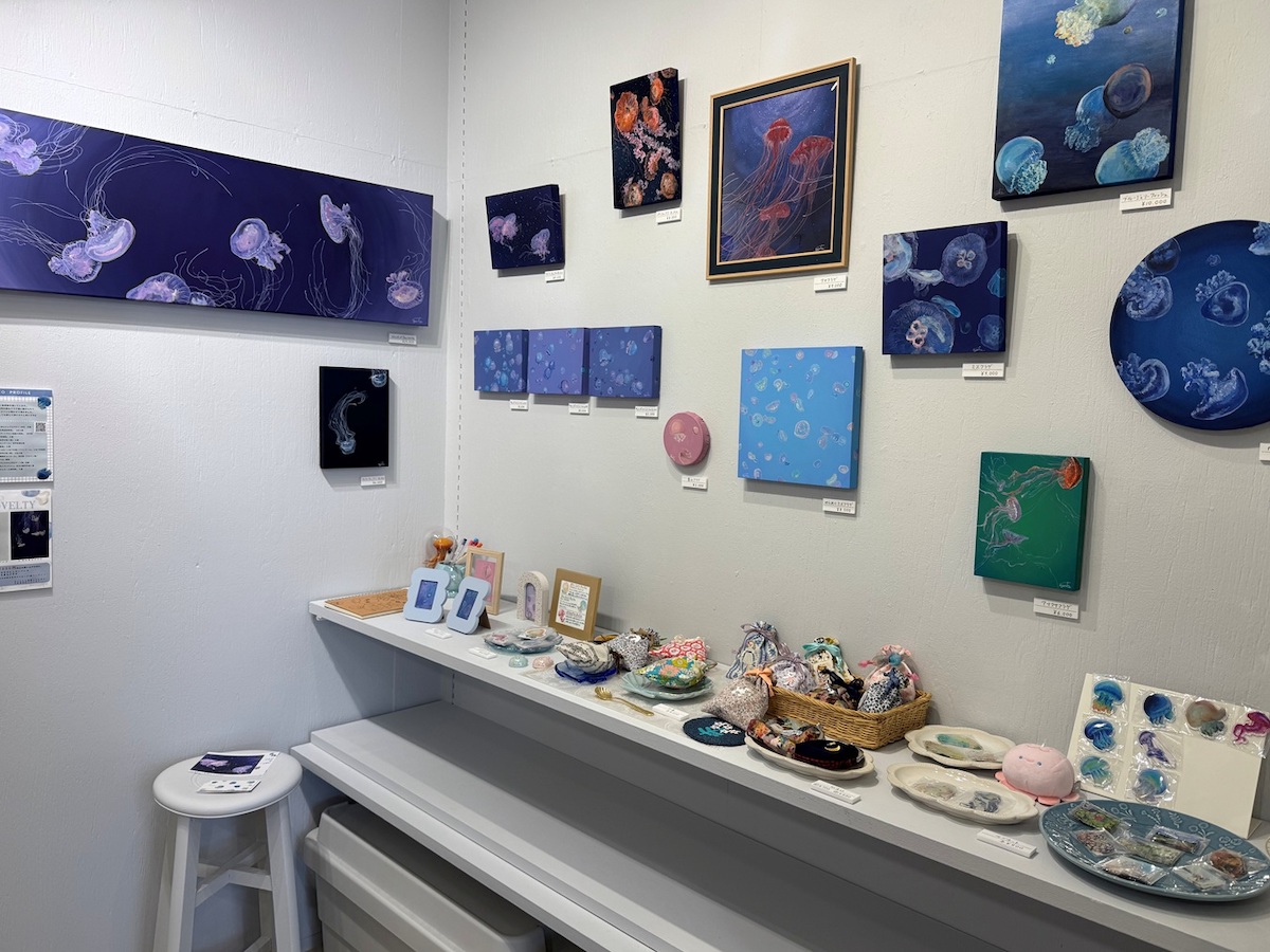 取材日には、shokoさんの個展「クラゲがいっぱい」が開催されていました。かわいい雑貨やポストカードも販売されていてテンションアップ!