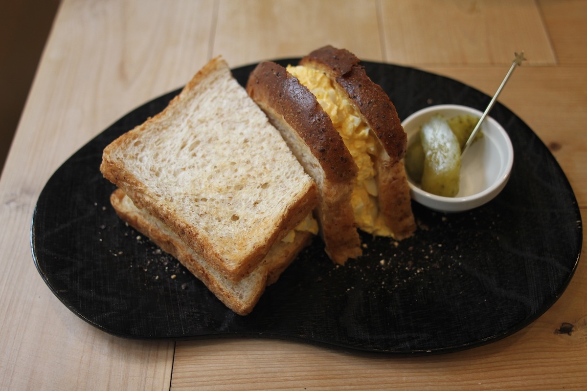「calas cafe & gallery」ではサンドイッチやトースト、自家製ケーキなどのスイーツ、ドリンクを提供しています。なかでも人気のメニューは、「トーストサンドイッチ タマゴ」800円。ブラックオリーブ入りで、ほんのりと甘みのある玉子を全粒粉のパンでサンドしたひと品は、ランチや小腹が空いたときのおやつにおすすめ。プレートに散らしてあるブラックペッパーを好みでつけて食べれば、スパイシーさが増して、また違った味が楽しめます。