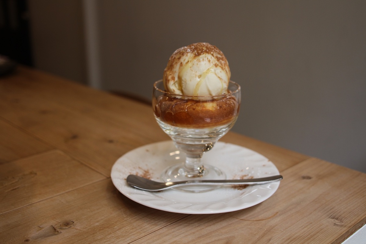 スイーツでは「バニラアイスのせホットドーナツ」750円が人気。温めたドーナツに冷たいアイスクリームがトッピングされていて、見た目のインパクトも大!トッピングもシナモンかジンジャーのパウダーと、はちみつ、レモンミント、チョコレートシロップのシロップから、それぞれ選べます。