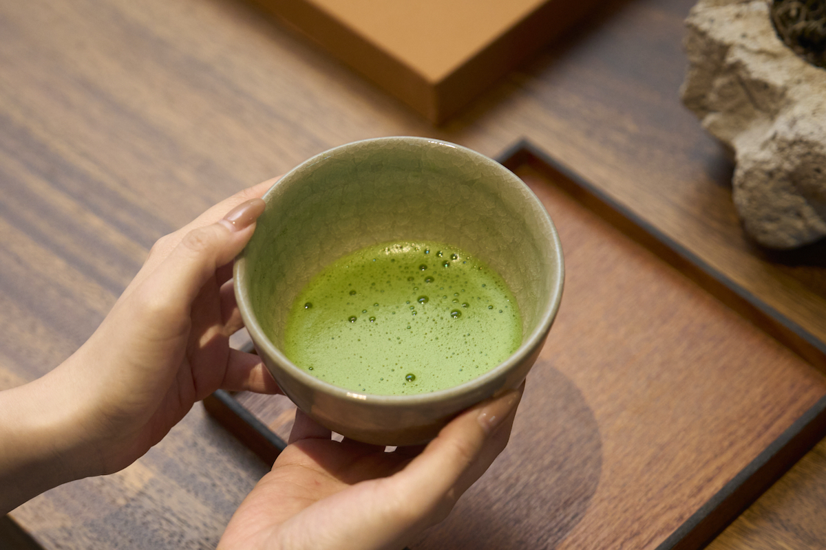 ウェルカムドリンクとして、その場で点ててくれる抹茶をいただきながら、優雅にチェックインの手続きができます。