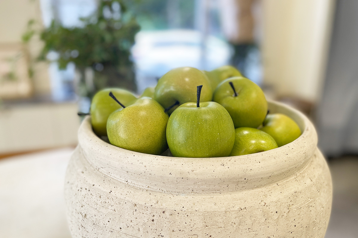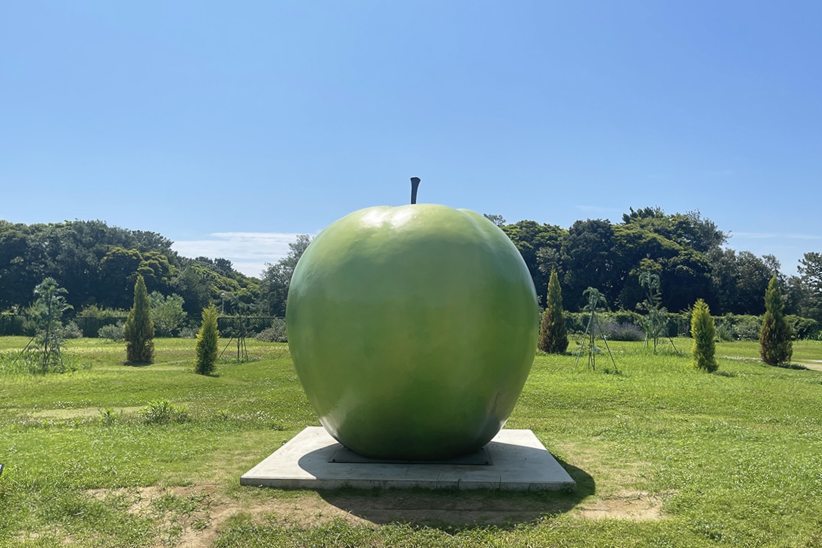 自然の神秘の象徴である青リンゴは「BOTANICA MUSEUM」のシンボル。オブジェは高さが約2メートルほどあり、圧倒的な存在感を放っていました。