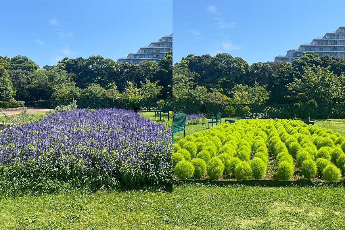 取材時には、ラベンダーやコキアが咲いていました。今年度(2025年)は春にチューリップが咲き、秋にはケイトウ、冬にはビオラが咲くそうで、季節ごとに違った景色を楽しめます。