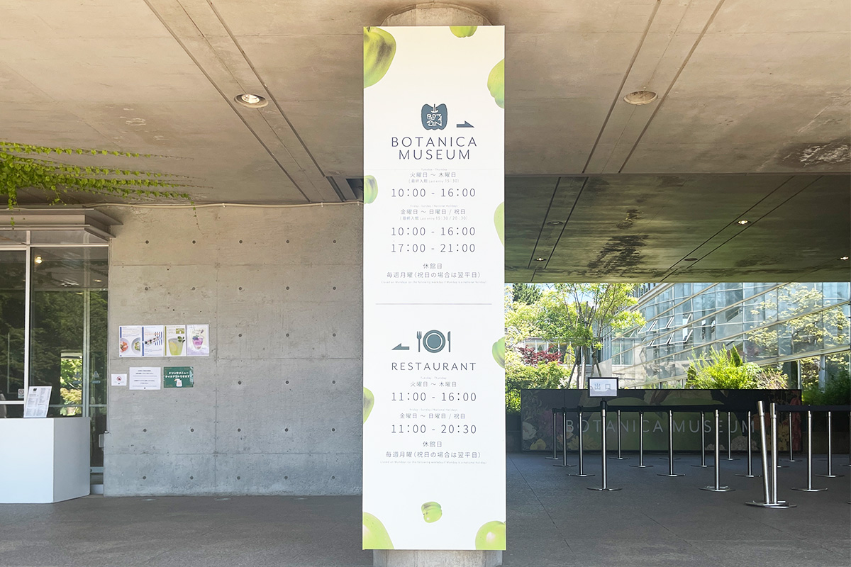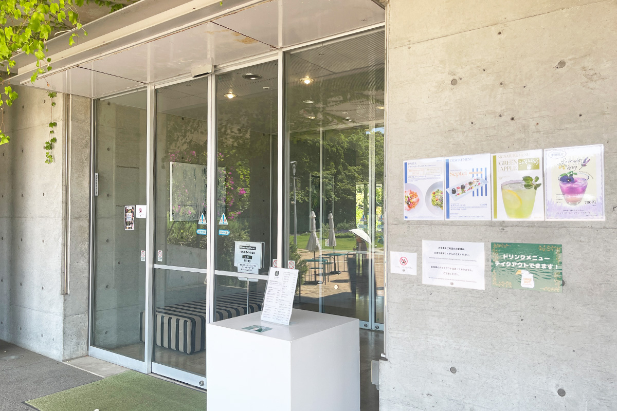 数々の植物に歓迎されながら歩を進めると、本館の入り口に到着しました。向かって右側がミュージアム、左側が併設レストランの入り口になっています。