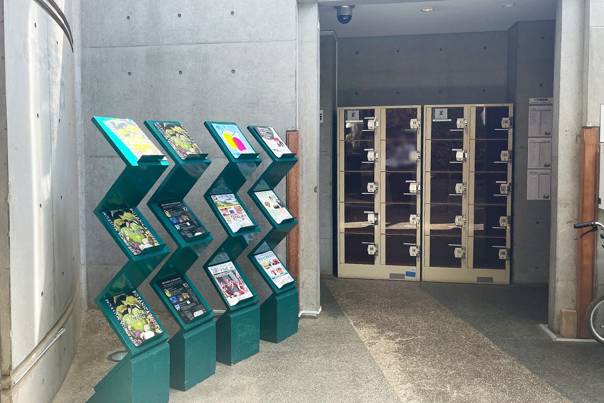 カウンターの横にはロッカー(※100円返却式)があります。館内は広いため、荷物が多い人はここへ預けて身軽に鑑賞するのがおすすめです。