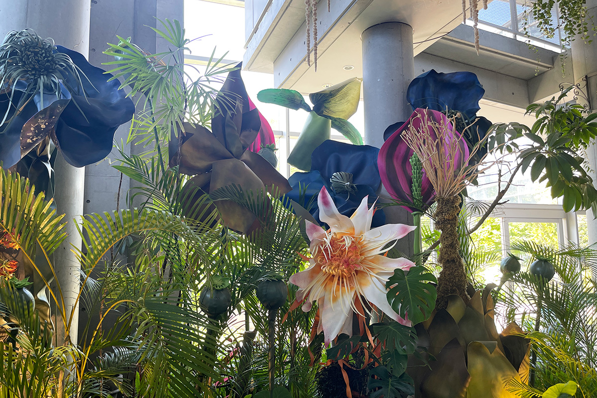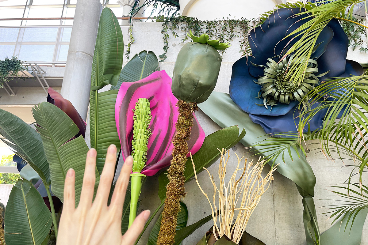 “子どもの頃に感じていた、大きくて広い驚きに満ちた世界を思い出せるように”という意図で作られた作品で、本物のようなリアルで大きな花々がゲストを出迎えてくれます。