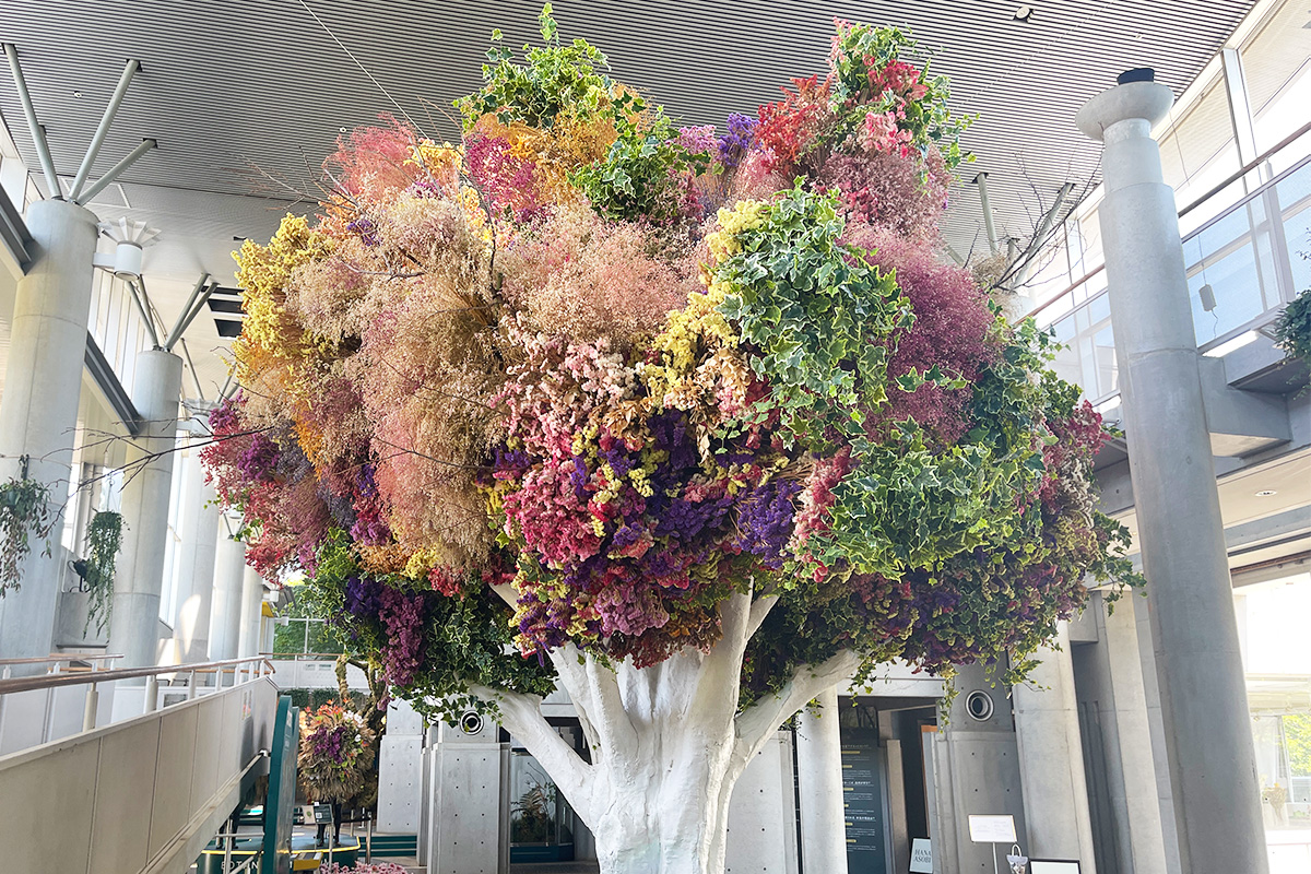 館内の中央でカラフルに美しく咲き誇っているこちらの木は、現代の多様性や無限の可能性、さまざまな考えがあることを可視化した『MIRACLE TREE(みらくる つりー)』。