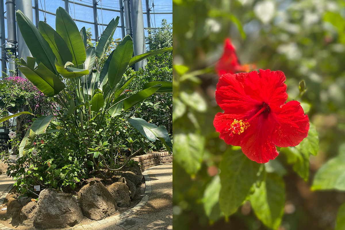 オーガスタやハイビスカスなど温かい地域でしか見ることができない珍しい熱帯植物がたくさん咲いています。