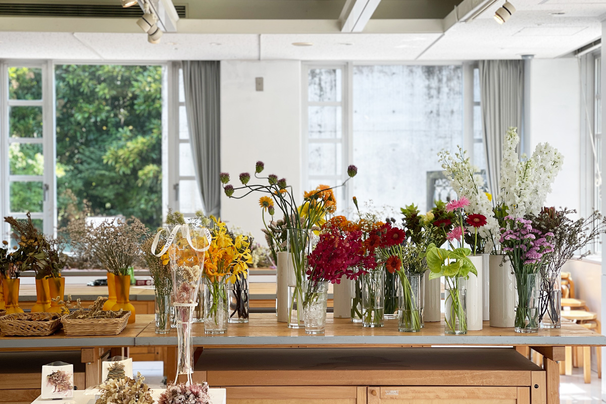 ワークショップでは「生花」2200円と「ドライフラワー」3300円で、好きな花を3輪選び、世界に一つだけのオリジナルのブーケを作る体験ができます。予約は不要で、来館の記念におみやげとして持って帰る人も多いのだとか。