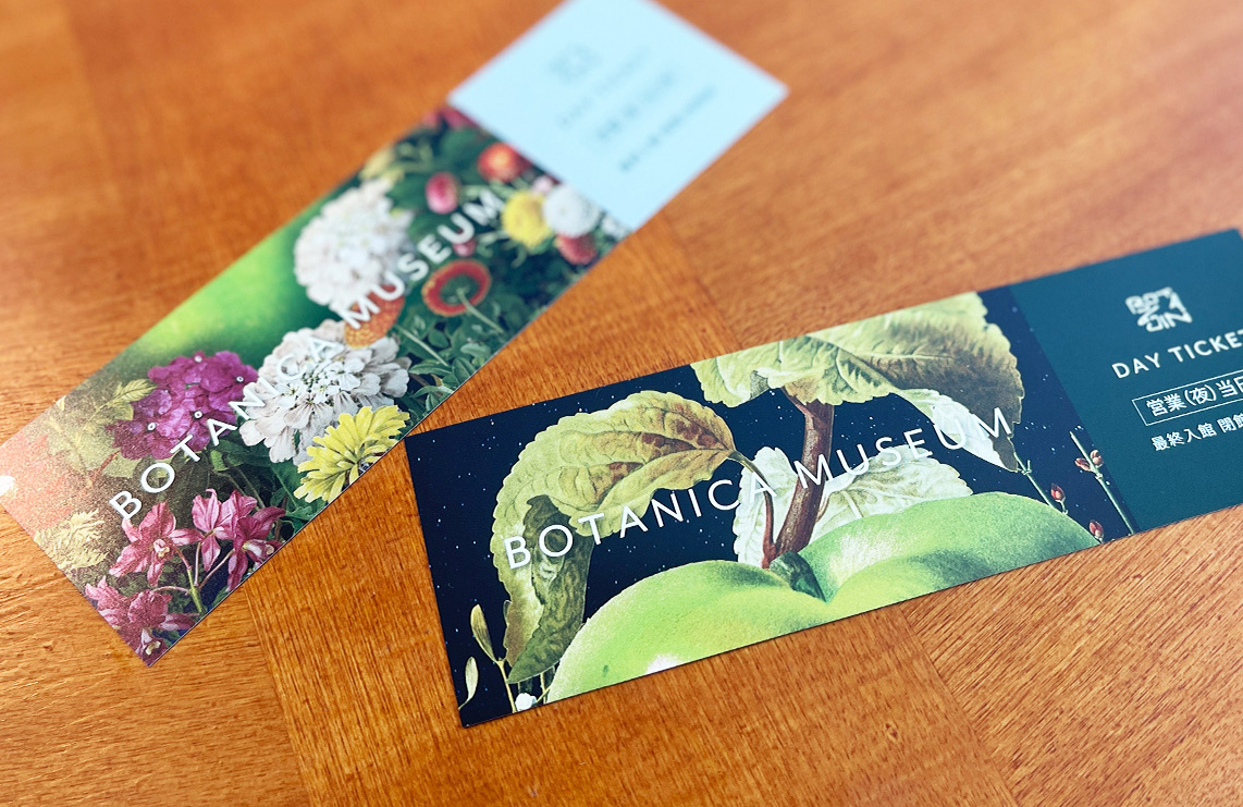 「BOTANICA MUSEUM」は、昼の部と夜の部(金〜日曜・祝日のみ)の運営があり、入館時間によってチケットの絵柄が異なります。写真映えする華やかなチケットは、どちらも揃えたくなってしまいますね。