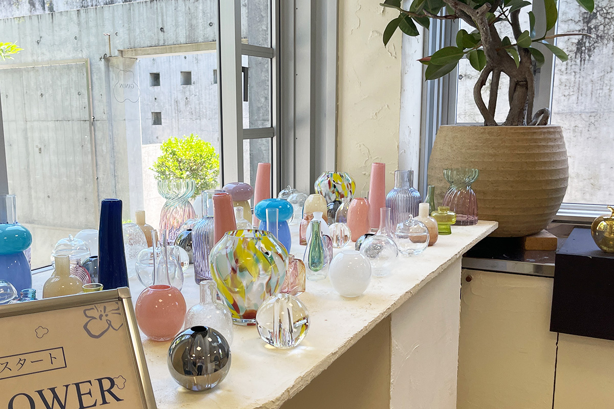 ショップ内では大小さまざまなかわいらしい花瓶が販売されているので、お家に帰ってからも思い出をきれいに飾ることができそうですね。
