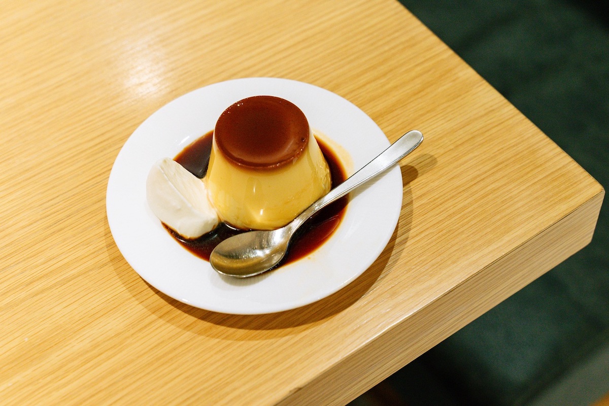 デザートメニューの一部はモーニングの時間帯でも楽しめます。こちらの「カスタードプリン」500円も朝から提供。卵・砂糖・牛乳のみで作られた、幅広い世代に愛される素朴な味わいです。