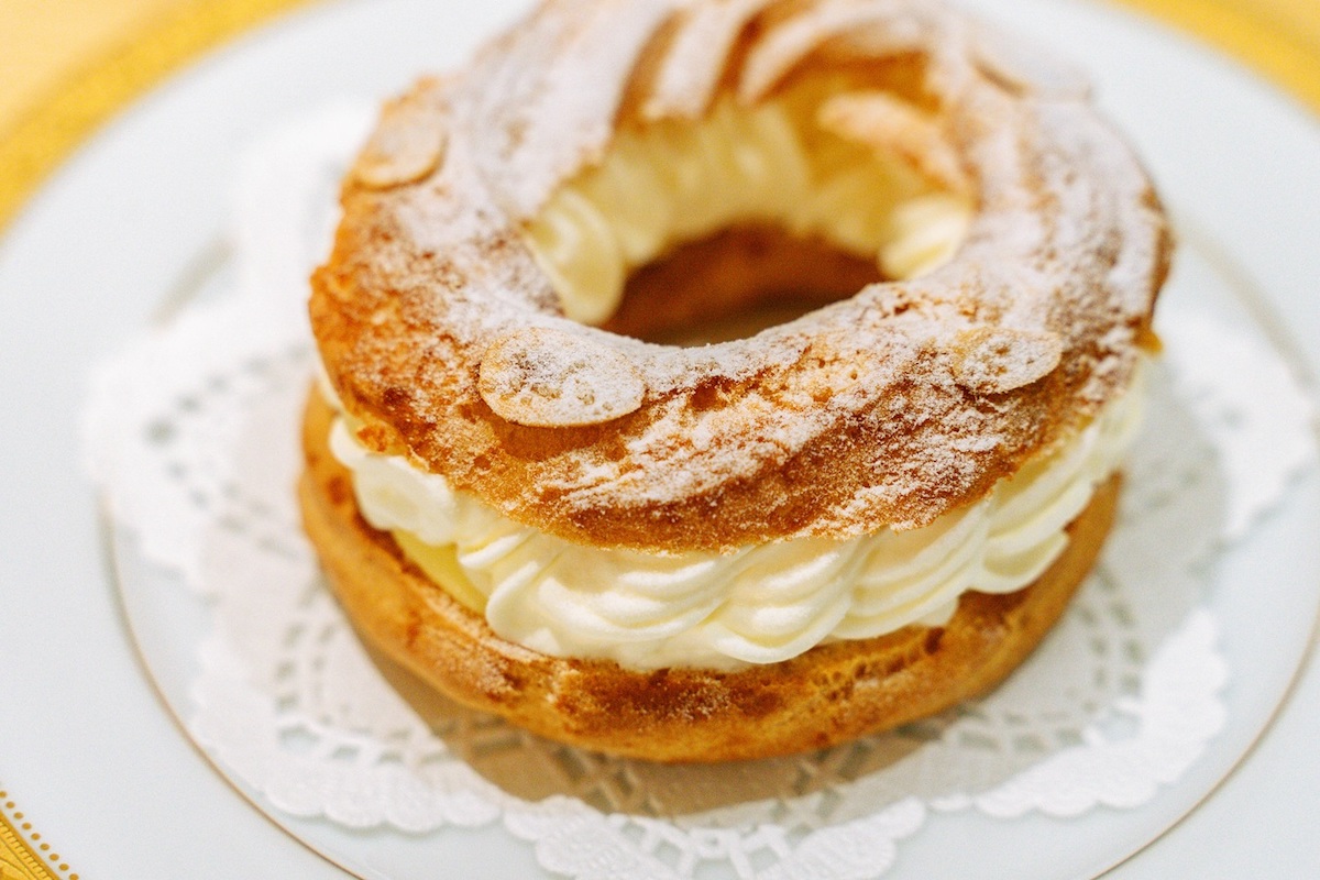 自家製のカスタードクリームと、クレーム・ドゥーブルという高脂肪の生クリームを重ねた、甘さ控えめながらも濃厚なダブルクリームが特徴的。シュー生地の食感とシューにトッピングしたアーモンドの香ばしさ、クリームのなめらかな味わいが存分に楽しめる、後引くデザートです。