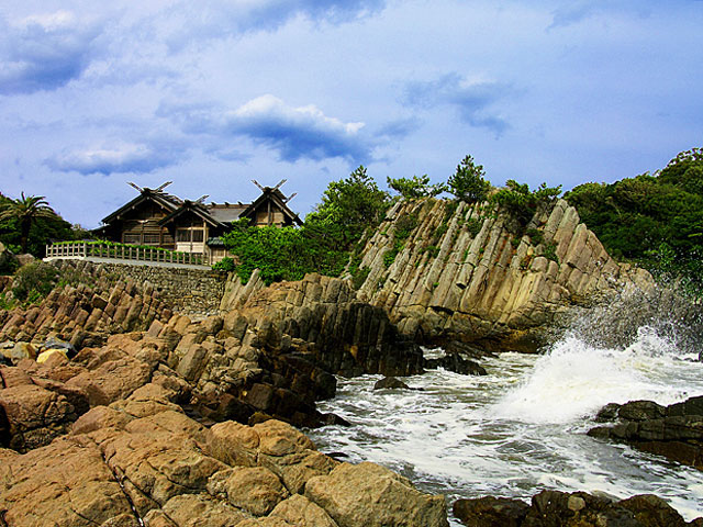 天照大御神を御祭神とする「大御神社(おおみじんじゃ)」は、“日向のお伊勢さま”として知られる古社。絶景の大海原を見渡す柱状岩に立つ神社の境内には国歌「君が代」に歌われる日本最大級の「さざれ石」群があります。