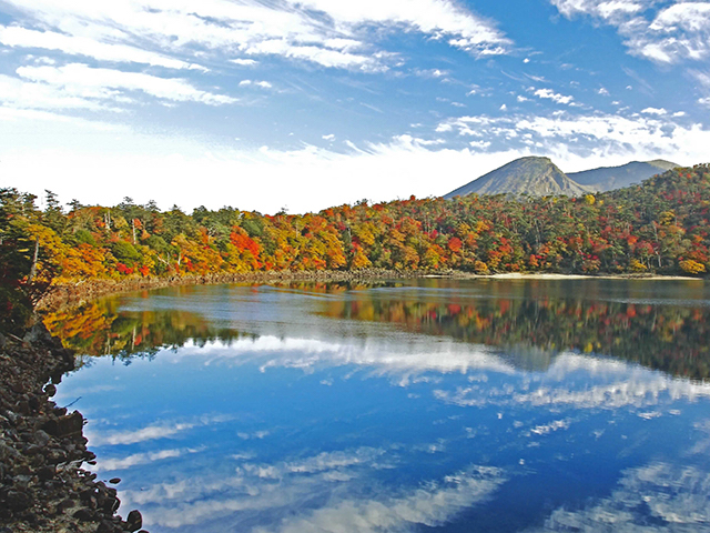 春から夏にかけてはミヤマキリシマやノカイドウ、秋はススキの群生や山を染めあげる紅葉、冬は樹氷と、四季折々に見せてくれる景観が見事!散策コース(約30分)が整備され、トレッキングスポットとしても人気です。「えびのエコミュージアムセンター」では「えびの高原」についての情報を提供しています。