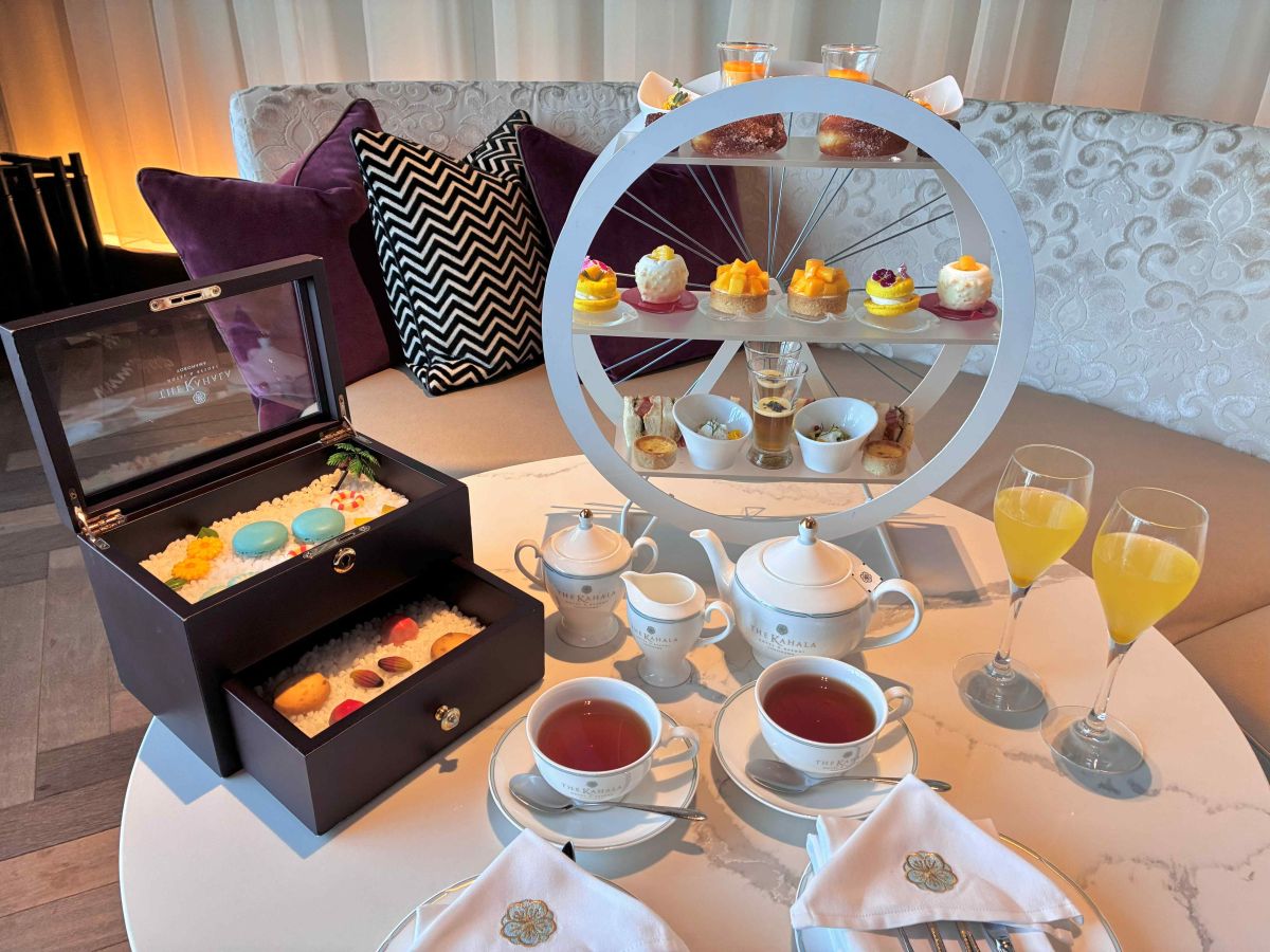 「トロピカルアフタヌーンティー」は、カハラお馴染みのケーキスタンドとジュエリーボックスで提供されます。