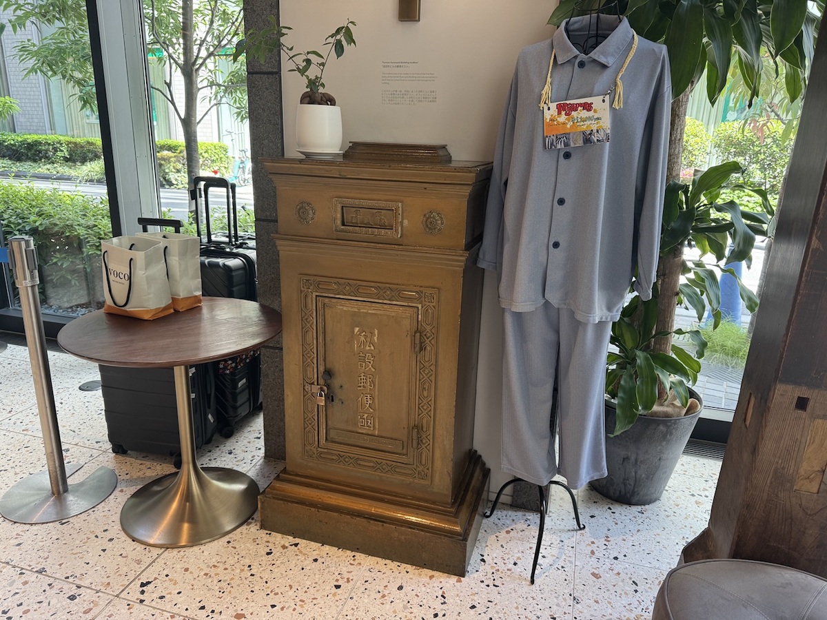 「voco 大阪セントラル」は大正時代に建てられた「京町ビル」の跡地に建造されたこともあり、ホテル内には旧京町ビルの面影があちこちに散りばめられているのも特徴です。写真中央にあるのは、旧京町ビルで実際に使われていた私設郵便ポスト。各階に設けられた投函口へ切手を貼った封筒やはがきを投函するとシューターを通して、こちらの私設郵便ポストに集められるという当時の画期的なシステムが採用されていたものだそう。
