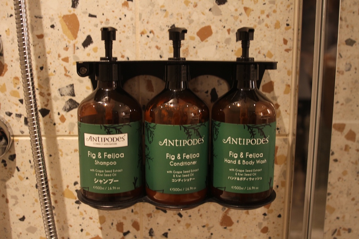 バスアメニティは生態系への影響を考慮して開発された植物由来の「アンティポディース」を用意。