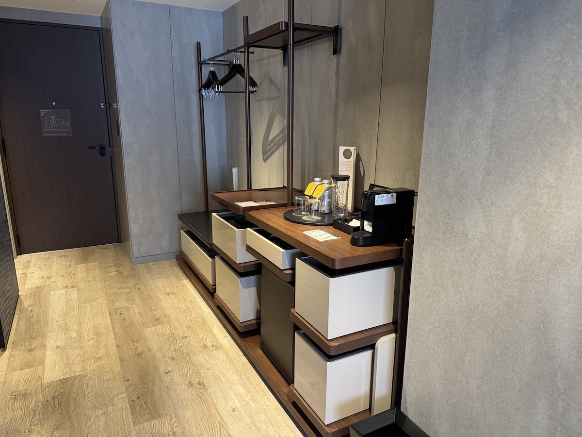 客室にはミネラルウォーター、電気ポット、コーヒーメーカーも完備されています。