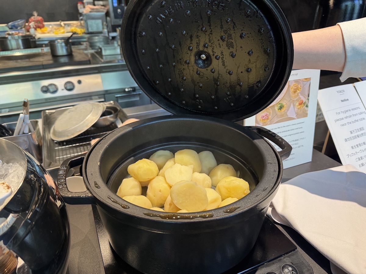 温かいポテトにお好みで明太子やバジル、しば漬けタルタル、ツナなど加えてつくる「カスタムホットポテトサラダ」もありました。
