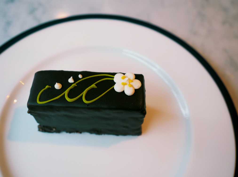 こちらは、ナッツとチョコレートの味わいが口いっぱいに広がる「パトリシアン」(540円)。プラリネを混ぜたバタークリームに、ヘーゼルナッツの豊かな風味が楽しいダクワーズ生地を重ね、ビターチョコレートで包んでいます。表面に描かれている花は季節によって変わるそうなので、季節の花をケーキと一緒に楽しめるのも魅力ですね!