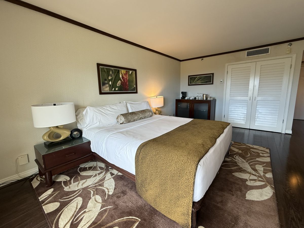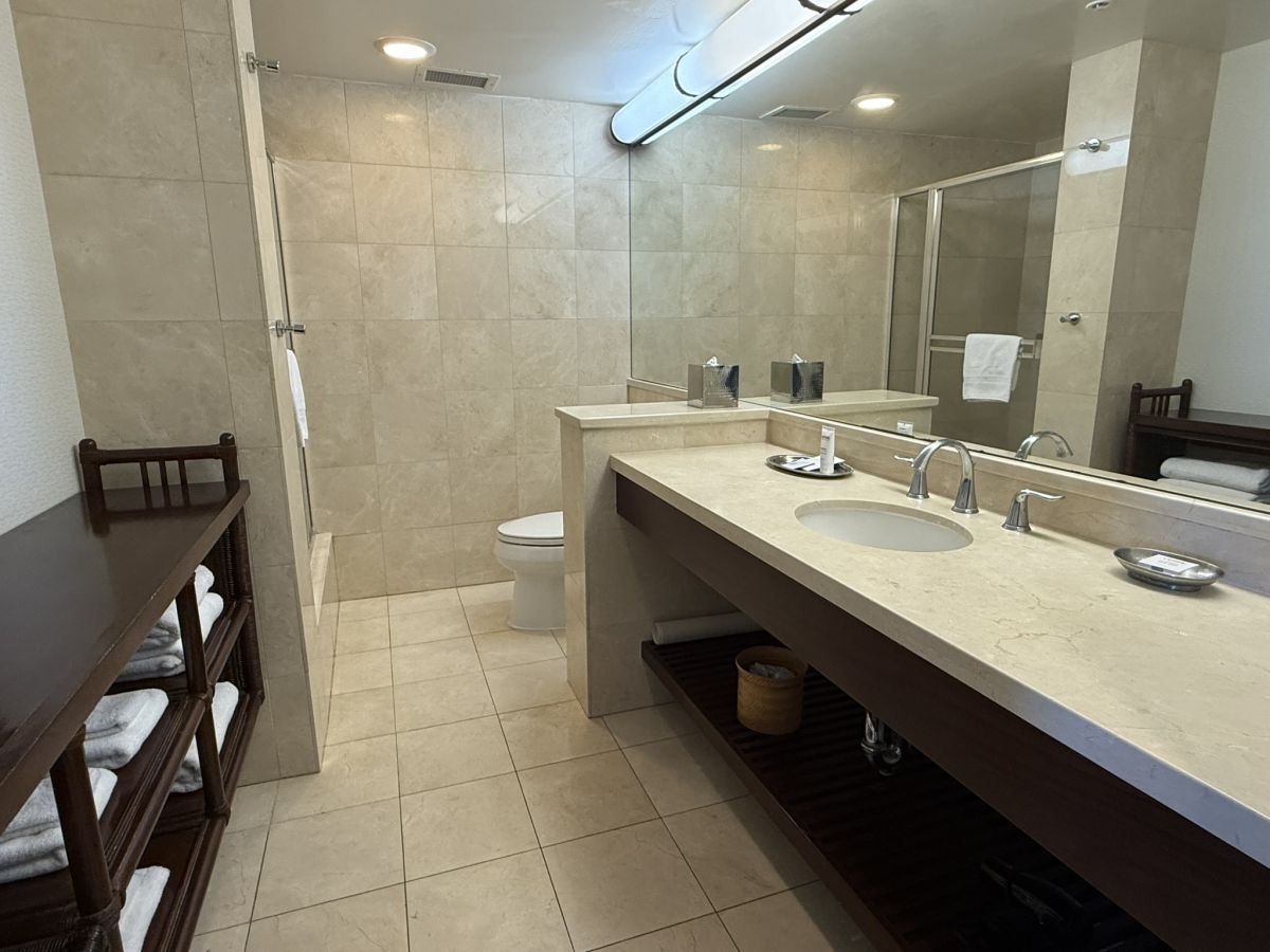 お部屋には、マスターベッドルーム(キングベッド1台)、もう1室(キングベッド2台)、2つのバスルーム、広々としたリビングルーム、ダイニングエリア、キッチン、そして約84㎡ものプライベートバルコニーが備わっています。ハワイの心地よい風を感じながら、ラグジュアリーな空間で贅沢な時間を過ごせます。