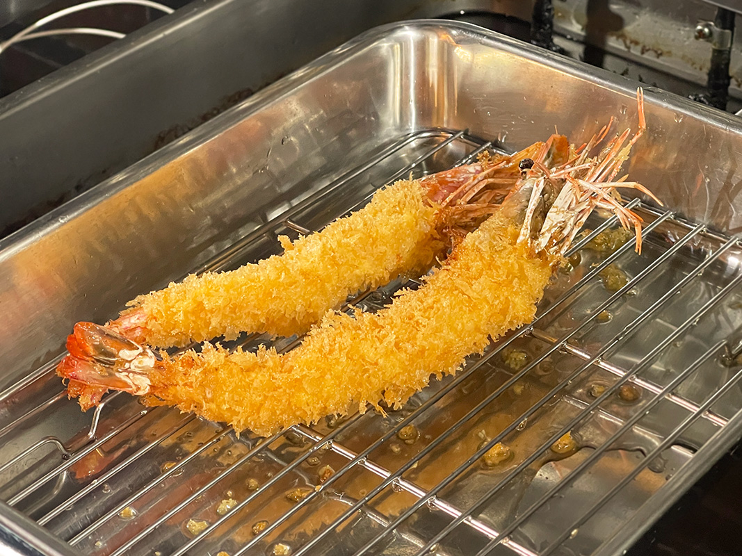 数分経ち、カラッと揚がったエビフライ。