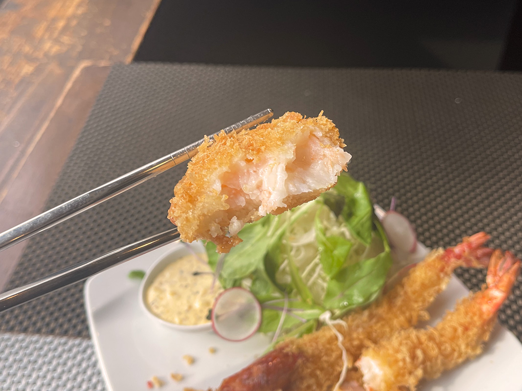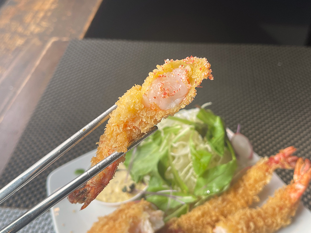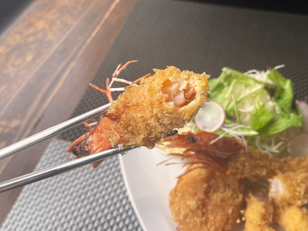 細かなパン粉を薄くつけることでサクッと軽やかな食感に仕上がっている衣と、その先にある生ならではの弾力とプリプリ感が最高においしい!