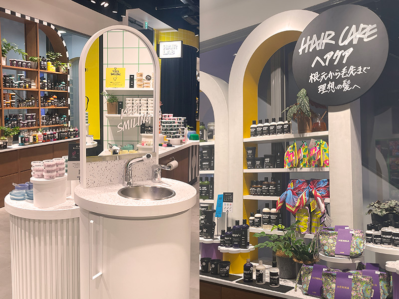 窓際には、時期によってテーマが変わるポップアップスペースを設けており「LUSH」の世界観をより感覚的に体験できるようになっています。