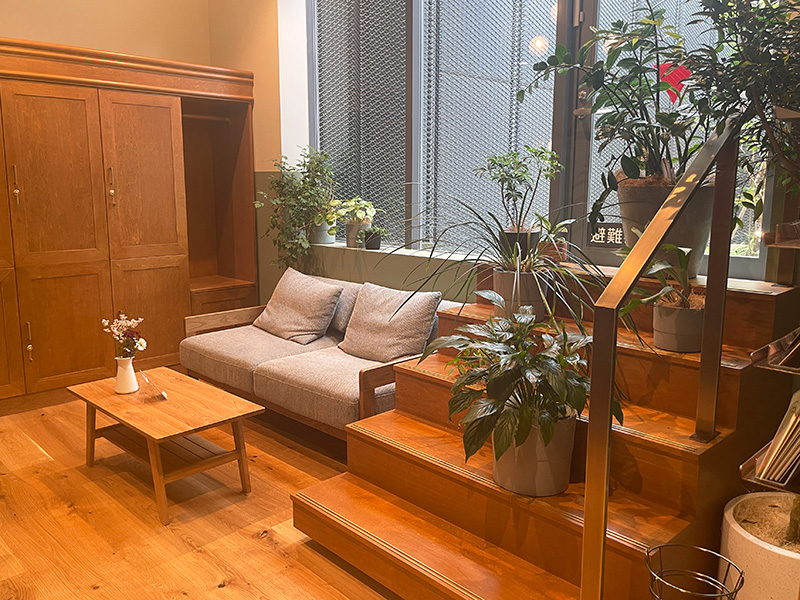 体験前に忙しない日常から離れてホッとひと息つく時間を取ってほしいという思いや、旅のはじまりのような気分を感じられる工夫として、こういったスペースを設けているのだそう。