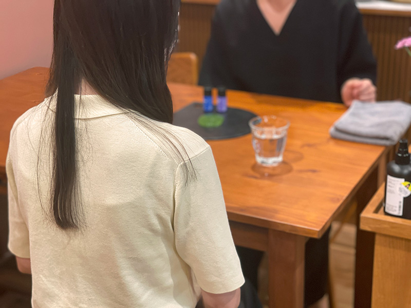 セラピストと相談しながら、アイテム選びが完了。多く種類があるアイテムは、コンサルテーションの内容をもとにセラピストが数個に絞って提案してくれるので、迷わずスムーズに選ぶことができますよ。