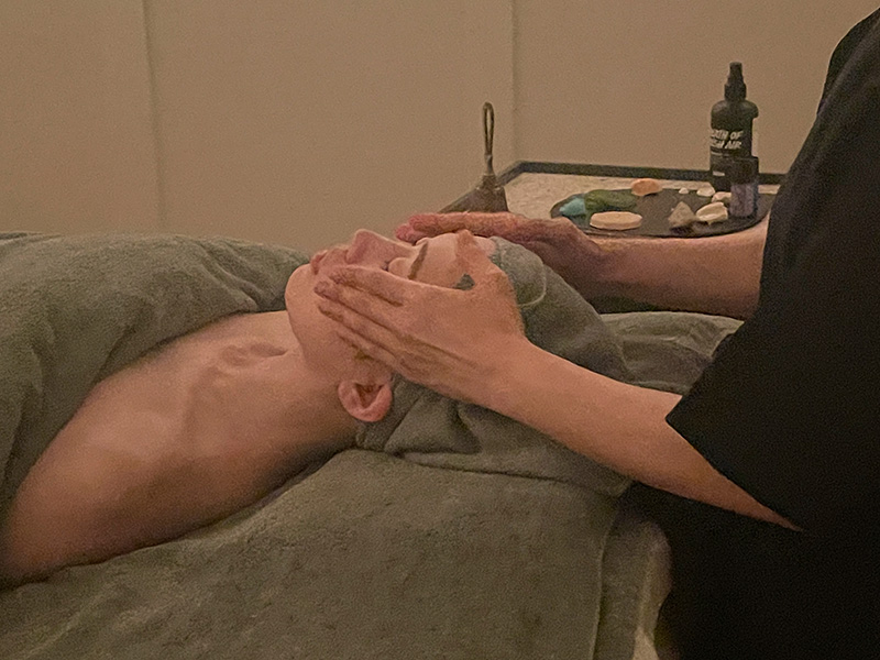 ストーンを使ってマッサージをした後は、フェイシャルマスクで肌にたっぷりの栄養を与えます。