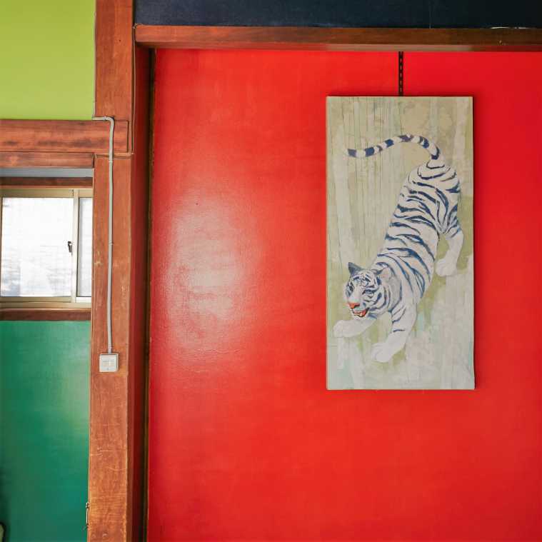 床の間にはトラが!美しい光が差し込む古民家ならではの部屋