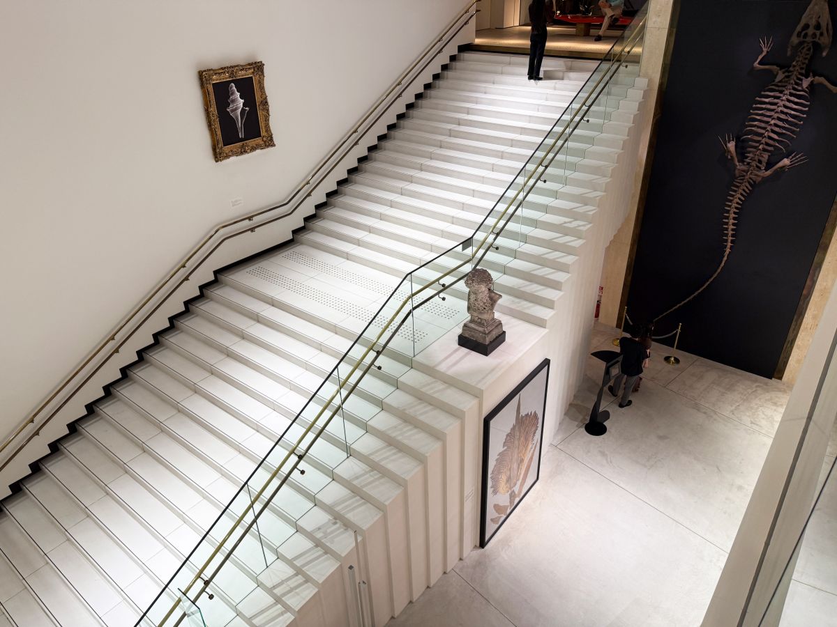 館内の床や壁は白で統一され、大きな階段や壁にかけられた骨格標本が目に止まります。天井が高く開放的で、スタイリッシュな印象でした。