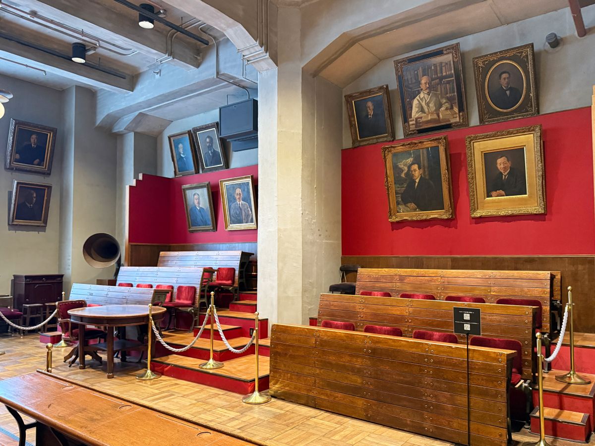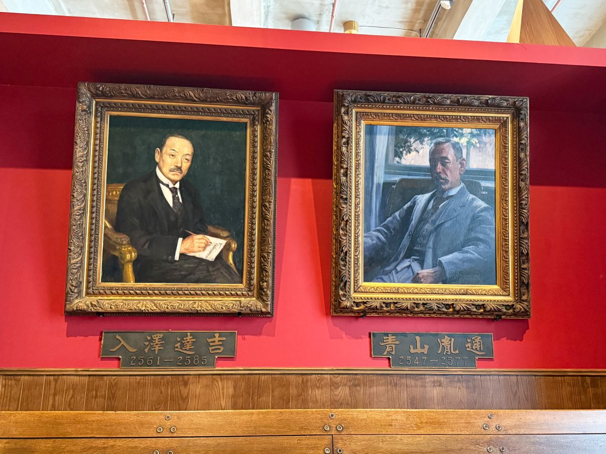 講堂の壁画には、東京大学の教授たちの肖像画がずらりと並んでいます。東京大学にある東京大学総合研究博物館のコレクションとして保管していた肖像画を修復して展示しているのだとか。