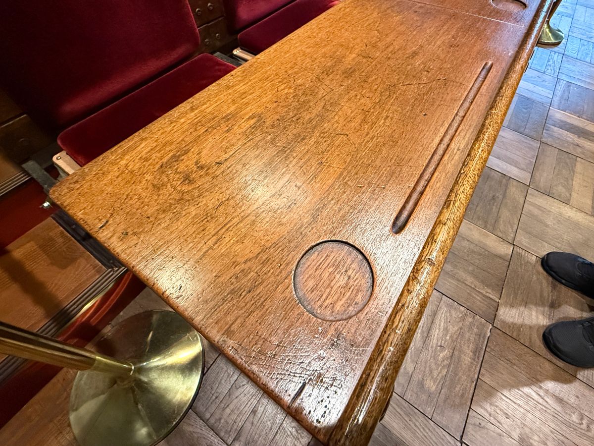 机の天板にはペンやインク壺を置いていた溝が彫られています。