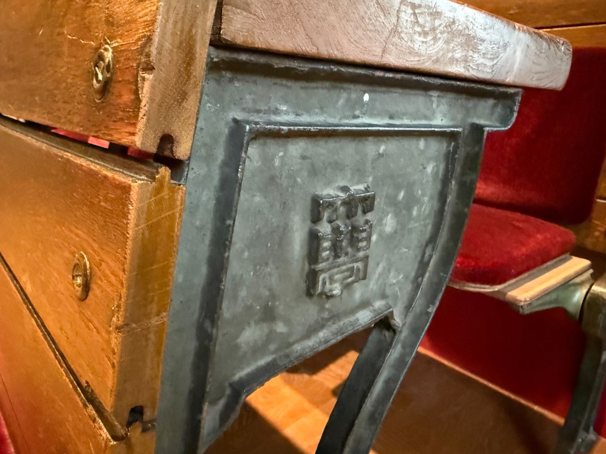 松原さん「机の脚にある”大學”の文字が実はお気に入りです。学校の備品に文字を入れるなんてぜいたくですよね。ぜひ注目していただきたいです。」