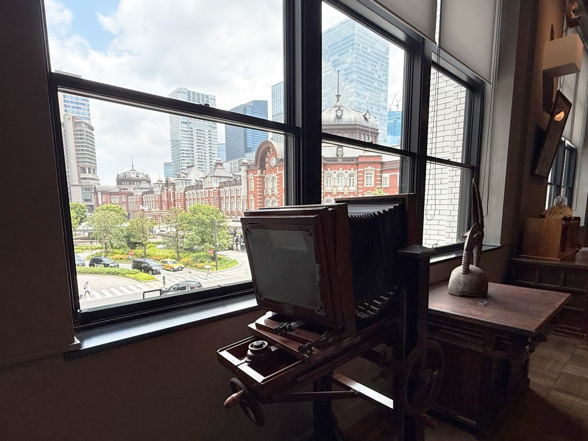 窓から外を見ると東京駅が見えます。昔、郵便局で働いていた人も同じ景色を見ているのかなと思うと不思議な気分になりました……。