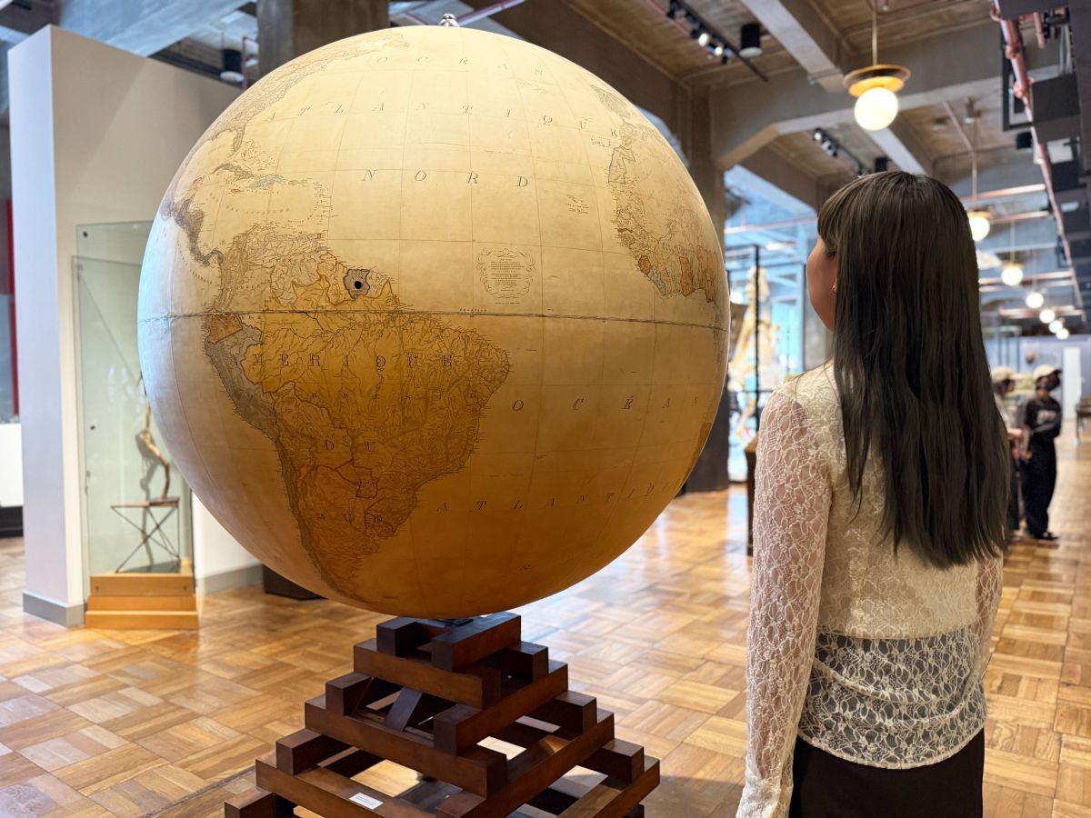 少し奥に進むと巨大な地球儀が目に入ります。このスペースは、モダンなテイストのなかで歴史的なコレクションを見学できる空間を意識して作られています。