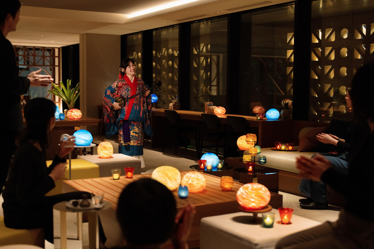 ゆいレール県庁前駅から徒歩約6分。那覇の街ナカにある「OMO5沖縄那覇by 星野リゾート」では、2025年6月1日から、時間を気にせず寝る間際まで沖縄文化に浸れるナイトイベント「琉球のひととき、宵の宴」を開催しています。 「三線ライブ」以外はビジターもOK! というイベント内容をご紹介します。