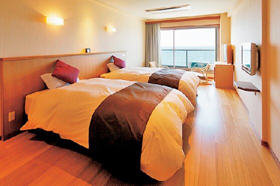 客室からも露天風呂からも海を望める「皆生シーサイドホテル 海の四季」