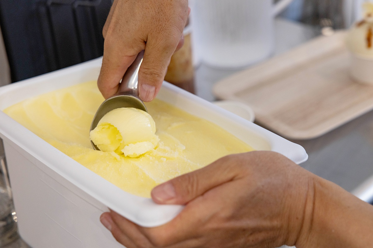 Scoopのジェラートは、那覇市に店舗を構えるジェラートの名店「SOUTH&NORTH」や、宜野湾の『Maon Vegan Factory』など、ローカルビジネスとのコラボによって製造されています。