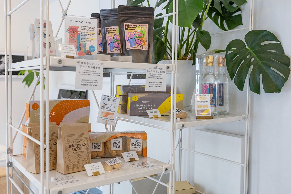 店内には、沖縄⾷材を使った焼き菓⼦や、薪炊きの⿊糖、元サッカー⽇本代表・⾼原直泰さんが栽培をする「⾼原コーヒー」、Scoopオリジナルキャラクター「scoopy」の雑貨も展開中です。